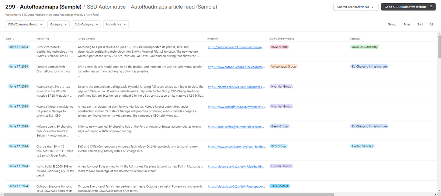 Our Automotive Roadmaps Tracker provides this clarity with clear, confident, and fast responses to competitive questions in a complex, fast-changing, market. Curated from tens of thousands of trusted sources, it delivers distilled insights validated by expert analysis in a normalized and actionable way – allowing you to save time, optimize products, uncover gaps, and align teams to create market confidence.